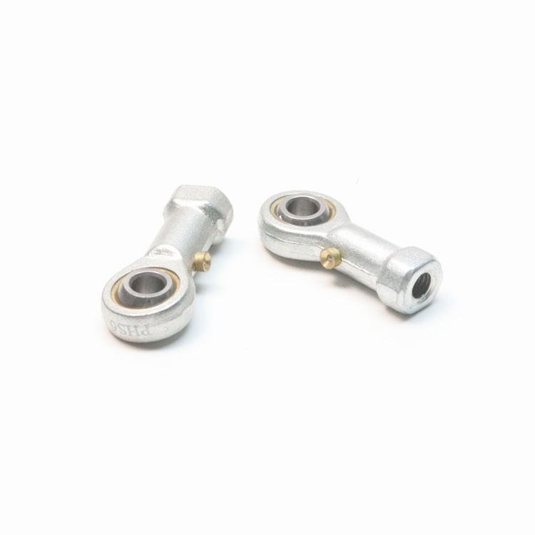 The PHS Series Rod End Bearing (also known as a Heim joint or rose joint) is an articulating mechanical articulating joint. It consists of a spherical inner ring with a cylindrical bore for shaft mounting, housed within an eye-shaped head that features an internal (female) threaded shank. This design allows for angular misalignment between connected parts, making it ideal for mechanisms that require smooth transmission of static and dynamic forces under oscillating or tilting conditions.